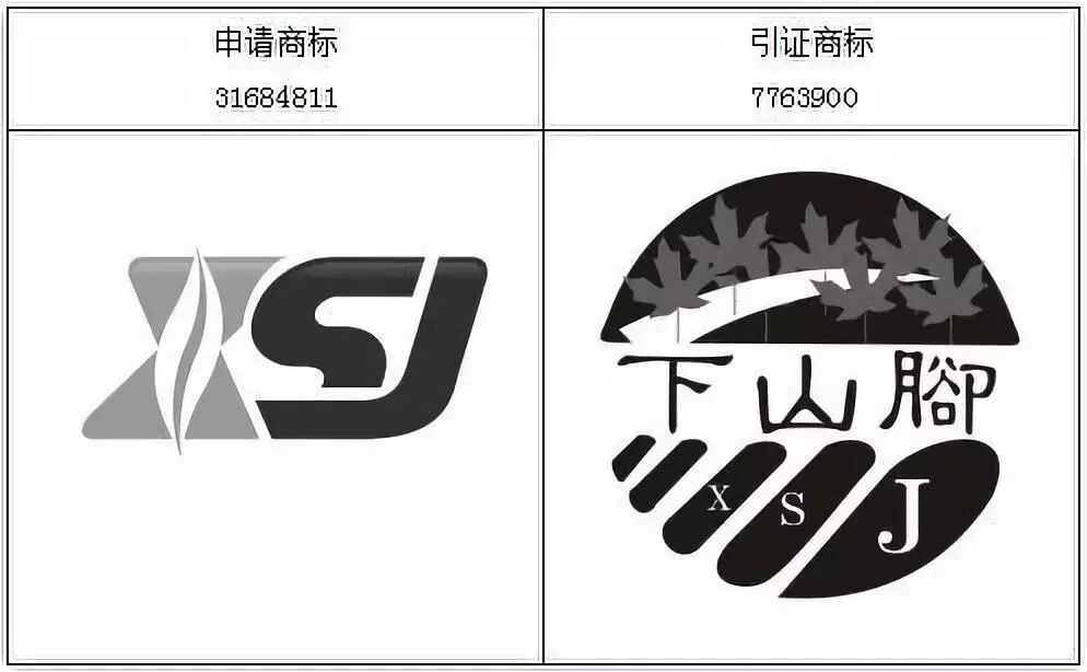 整体是由颜色深浅不同的两种色彩组合而成的。申请商标的各部分的设计均十分独特,吸引消费者的眼球。引证商标整体以汉字为分隔线,汉字之上刻画的是山顶的场景,汉字之下刻画的是下山的阶梯,汉字部分是位于商标标识的核心位置,是整个商标中的重点识读部分。